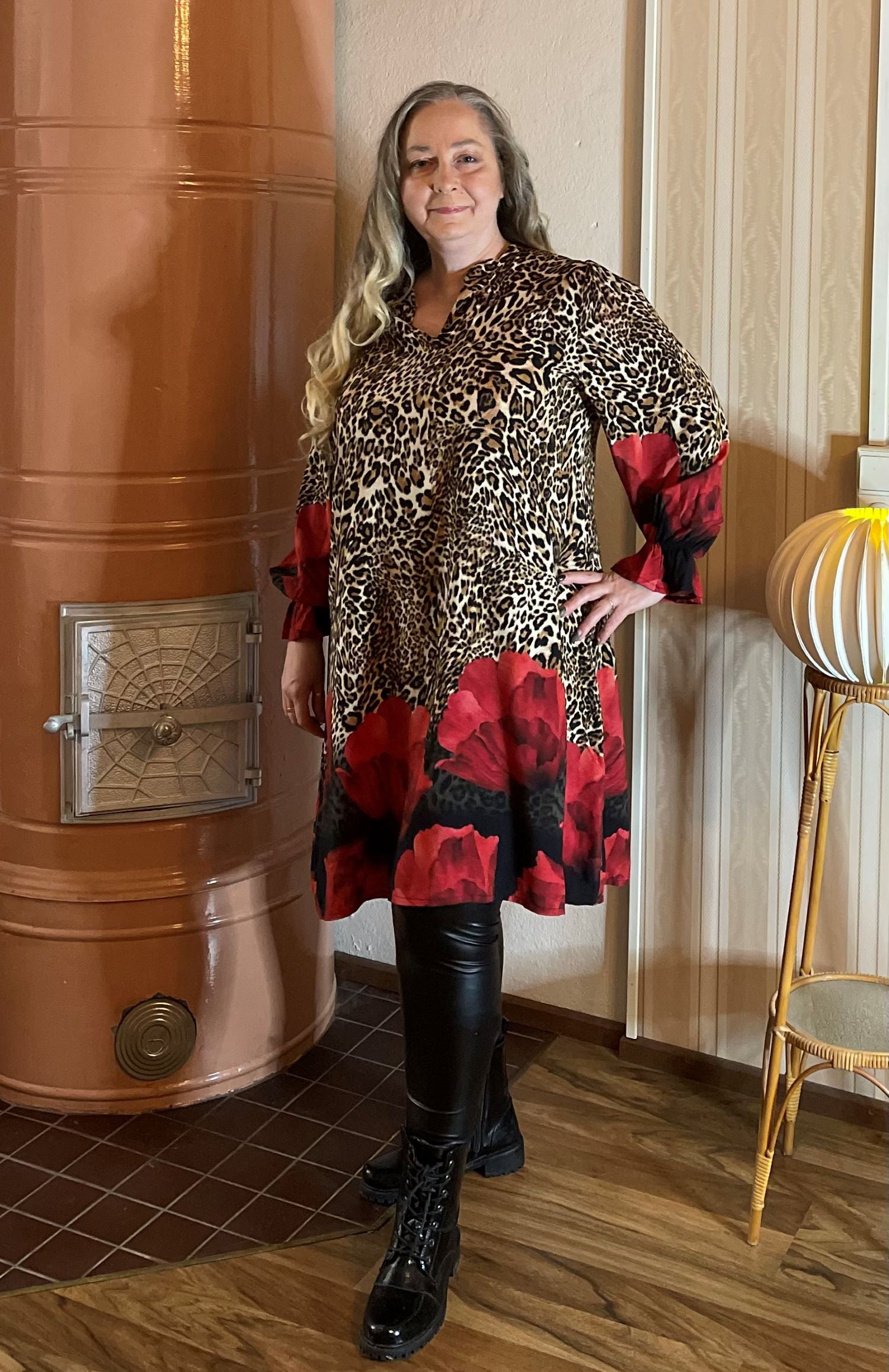 Ihana leo kuvioitu viskoosihame, sopii niin juhlaan kuin arkeen. Ilme muutettavissa yläosaa vaihtaen, niin mukava smokki kuminauha vyötärö. Tykkään kovasti!