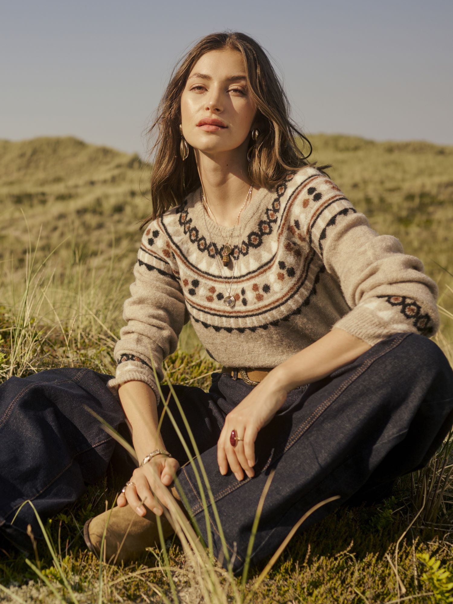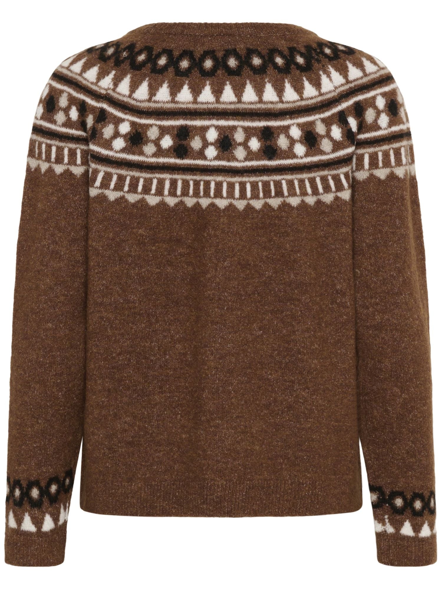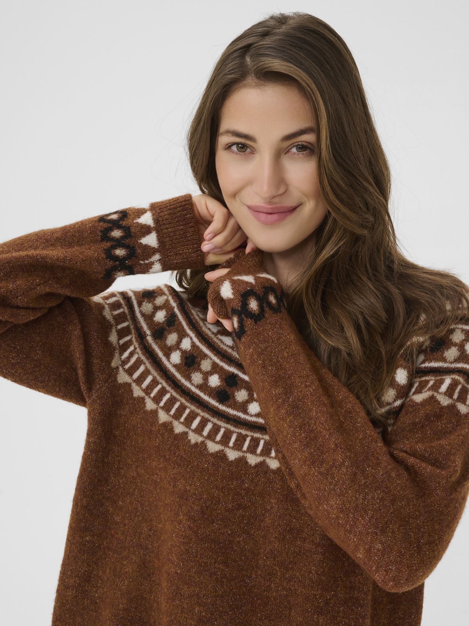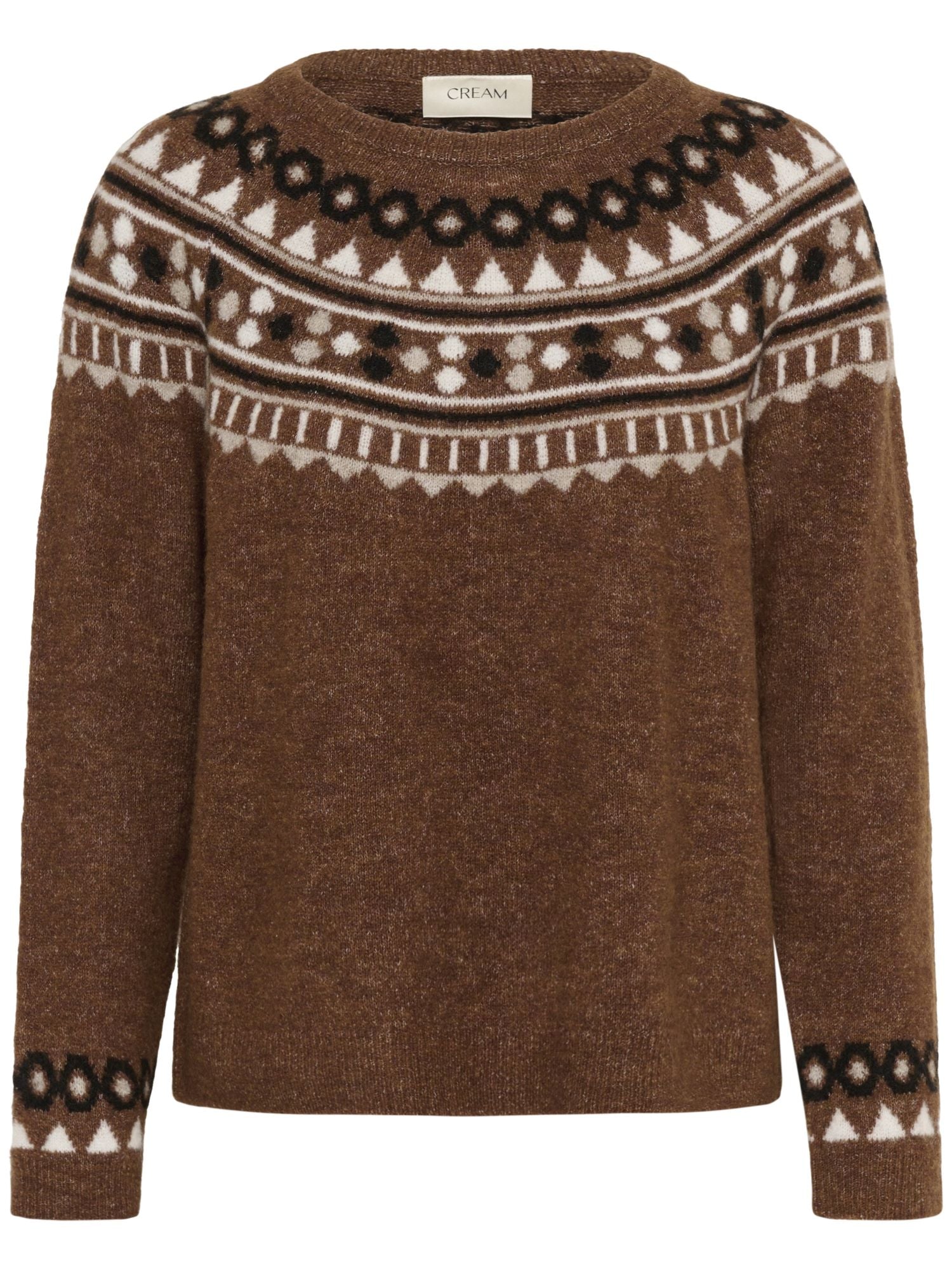 Creamin Cherrie neuleessa on kauniit yhteensopivat värit. Miellyttävän pehmeä materiaali ihoa vasten. Neuletta on kahdessa värissä, vaaleanruskea ja tummanruskea. Kauniit kuviot. Raglan hihat ja pyöreä pääntie.