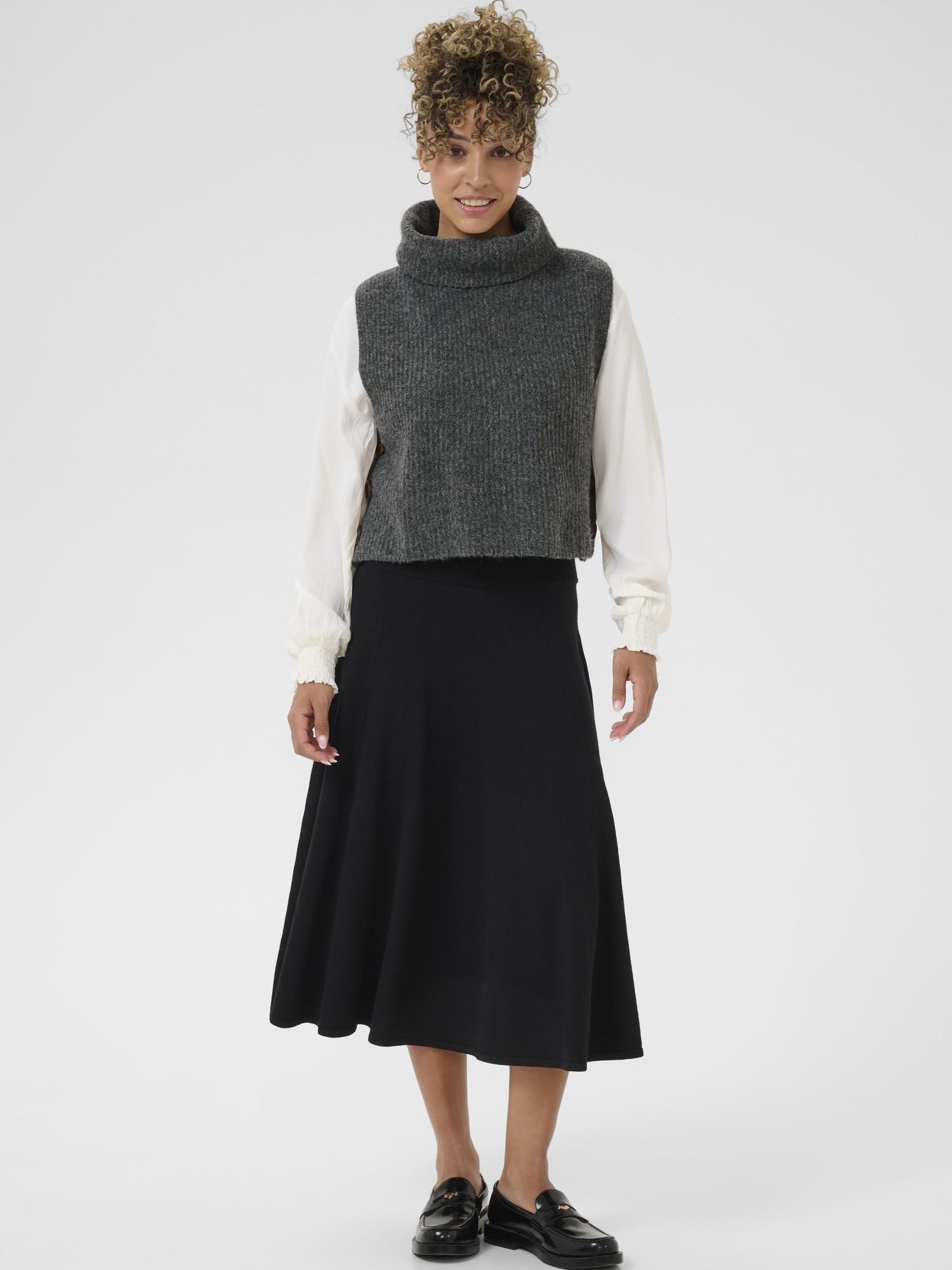 Creamin Starfi slipoveria voit käyttää lisäkerroksena puseron tai paidan päällä. Pitkä poolokaulus ja paksu neulos pitävät lämpimänä. Sivulla olevat napit antavat slipoverille näyttävyyttä.