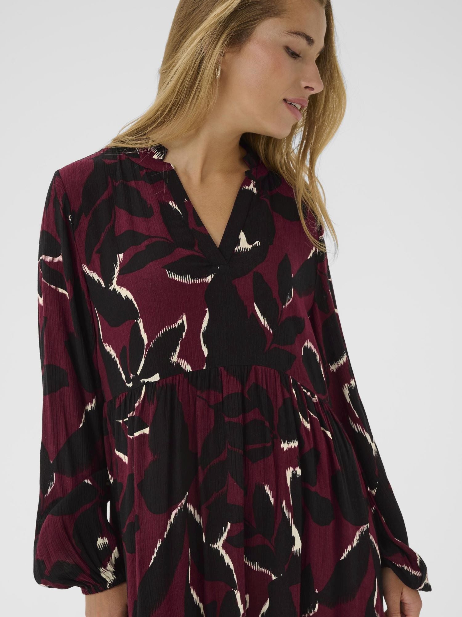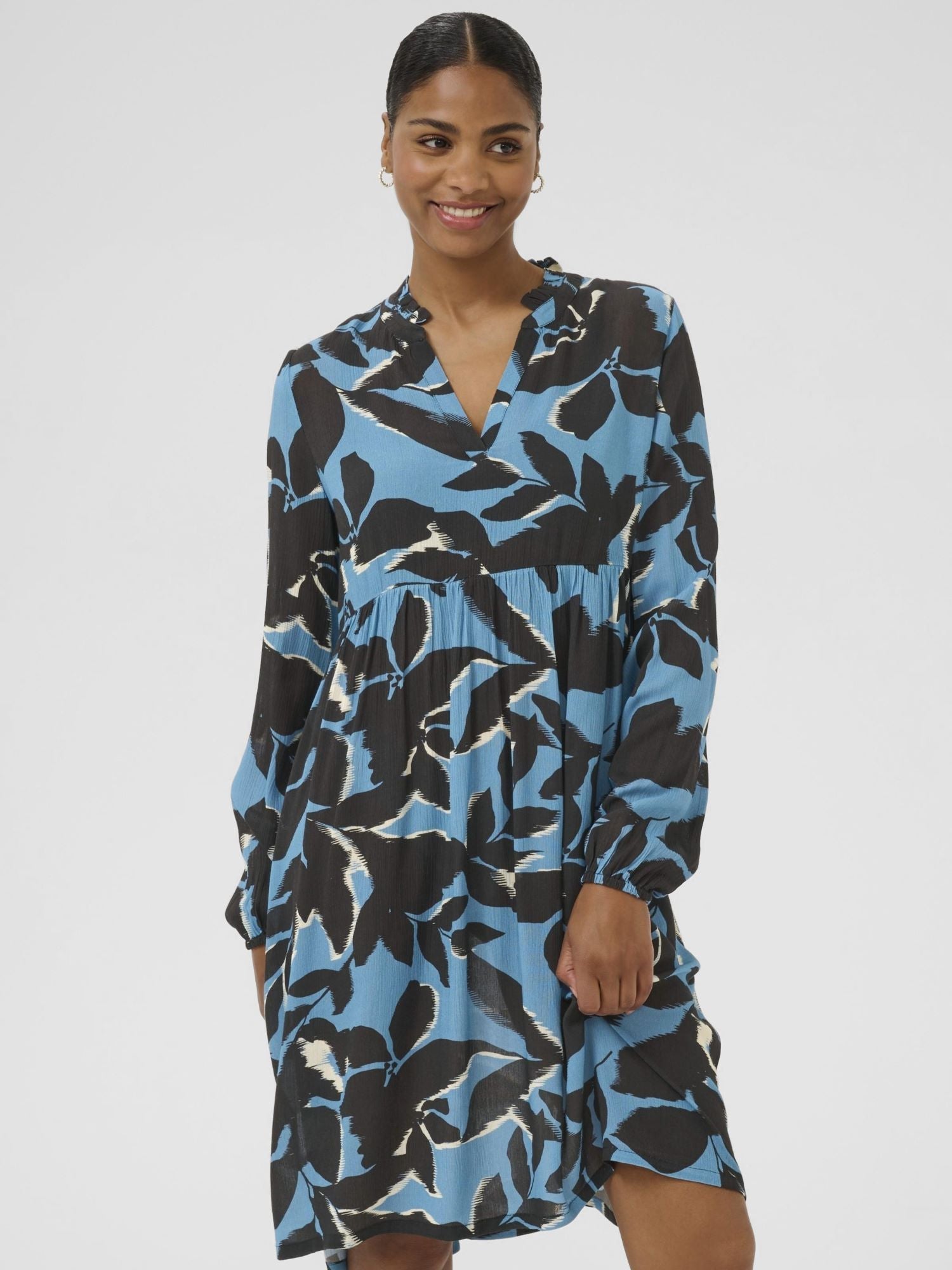 Kaffen Lisette Amber mekko on kaunis niin erkeen kuin juhlaan. Mekko on kevyt materiaaliltaan. Imarteleva v-pääntie, pitkät hihat, jossa kuminauhat. Kevyesti rypytetty vyötärö. Meka lköytyy kahdessa eri värissä.