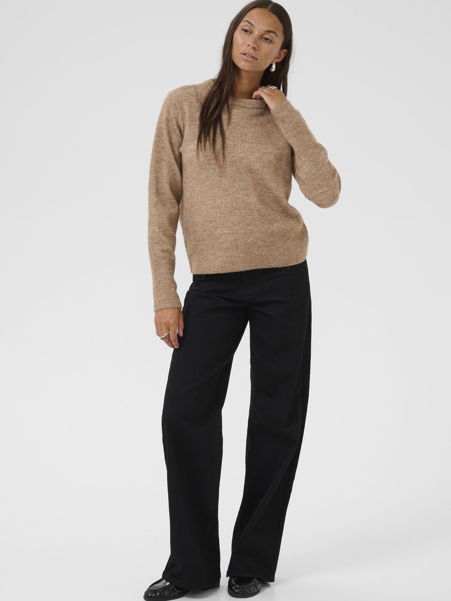 Kaffen Niel neulepuserossa on eleganssia. Rento istuvuus ja ihanan pehmeä ihoa vasten. Klassinen pyöreä pääntie. Pitkät hihat , joissa korkeat resorit hihansuissa ja helmassa. Ihanteellinen neule myös arkikäyttöön. Normaali istuvuus.