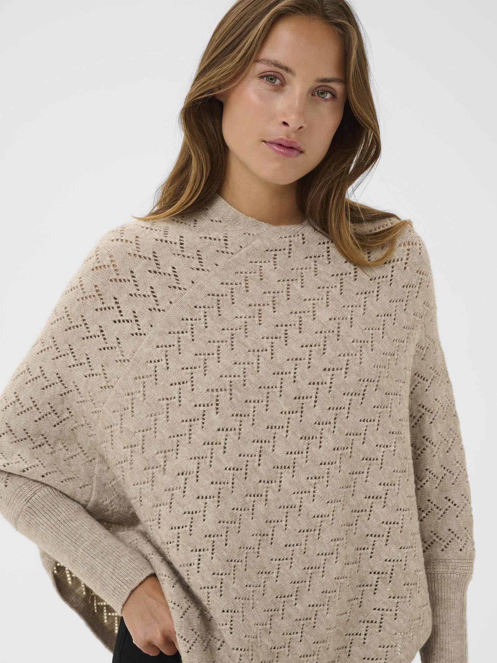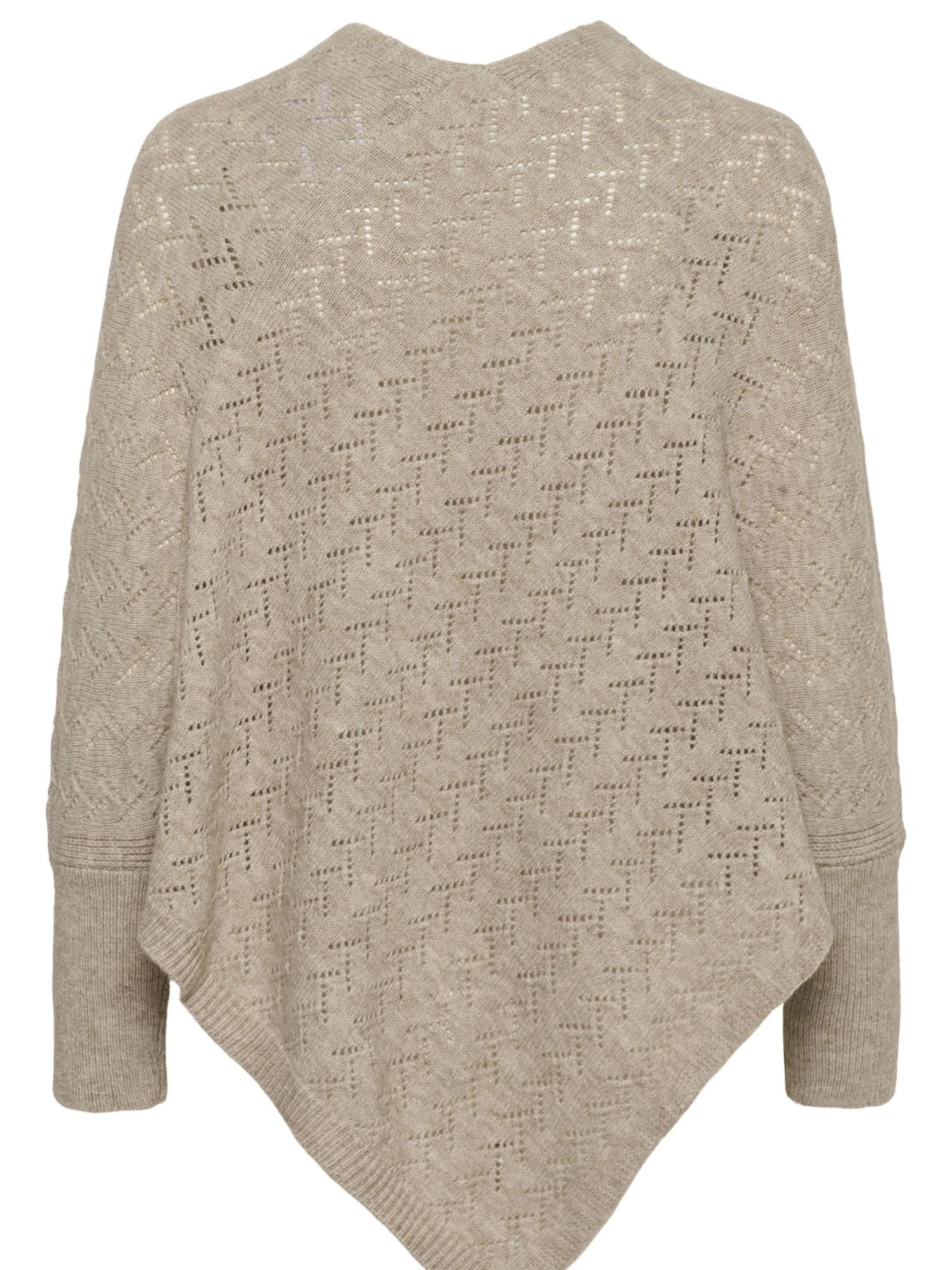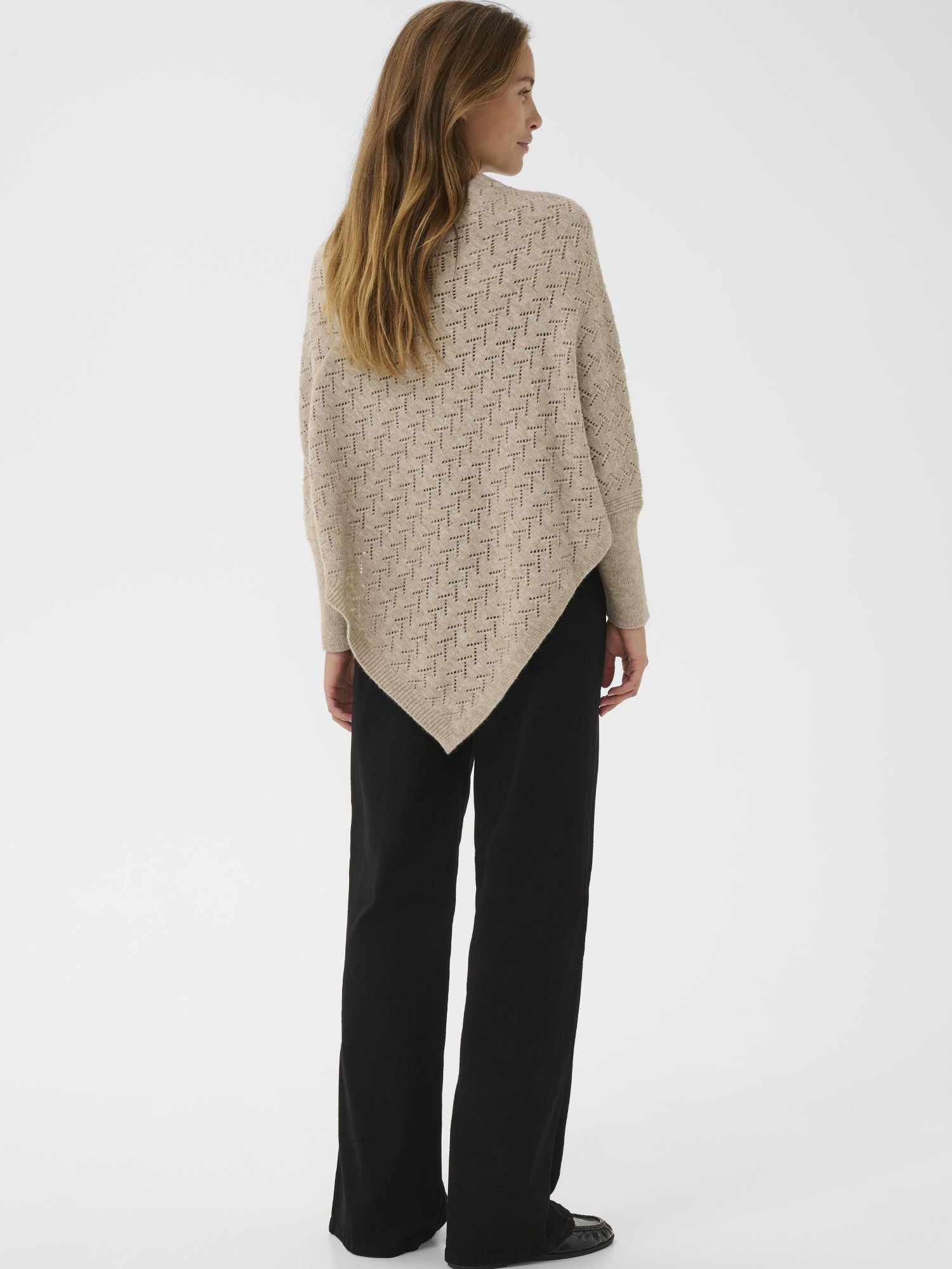 Kaffen Oline Poncho on kaunis lisä pukeutumiseen. Rento istuvuus ja epäsymmetrinen helma antaa modernin ilmeen. Pyöreä pääntie ja pitkät hihat.