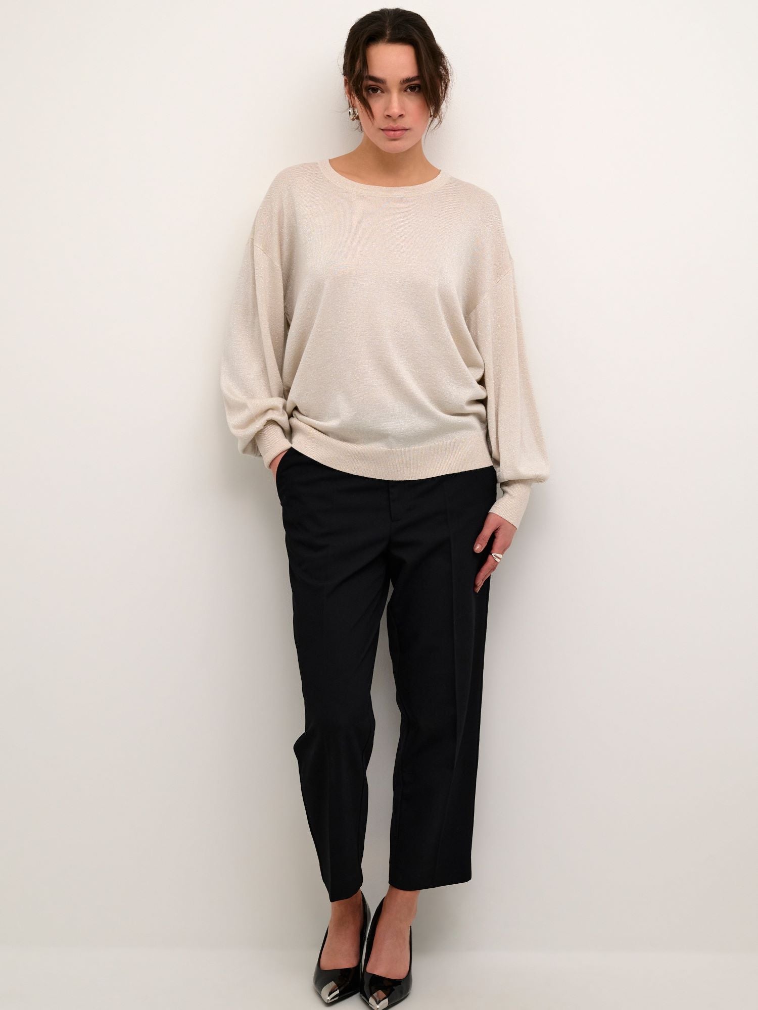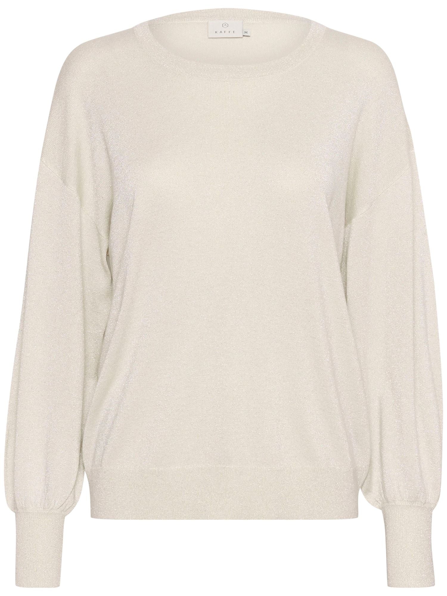Kaffen kauniisti kimaltava Regina neule. Neuleessa pyöreä pääntie. Resorit helmassa ha hihasuissa. Aavistuksen puhvimaiset hihat. Regina neule on joustava ja laskeutuu kauniisti.