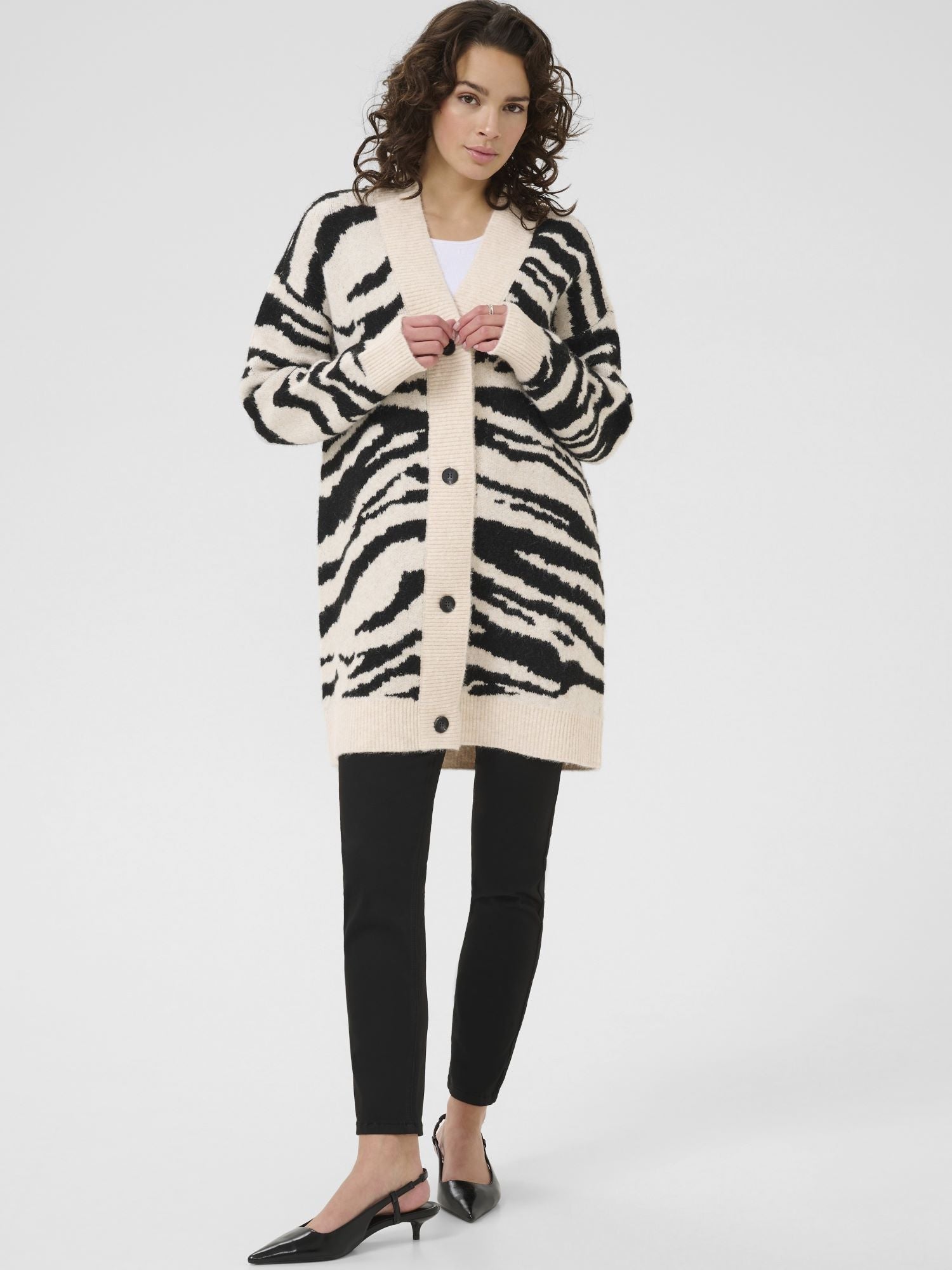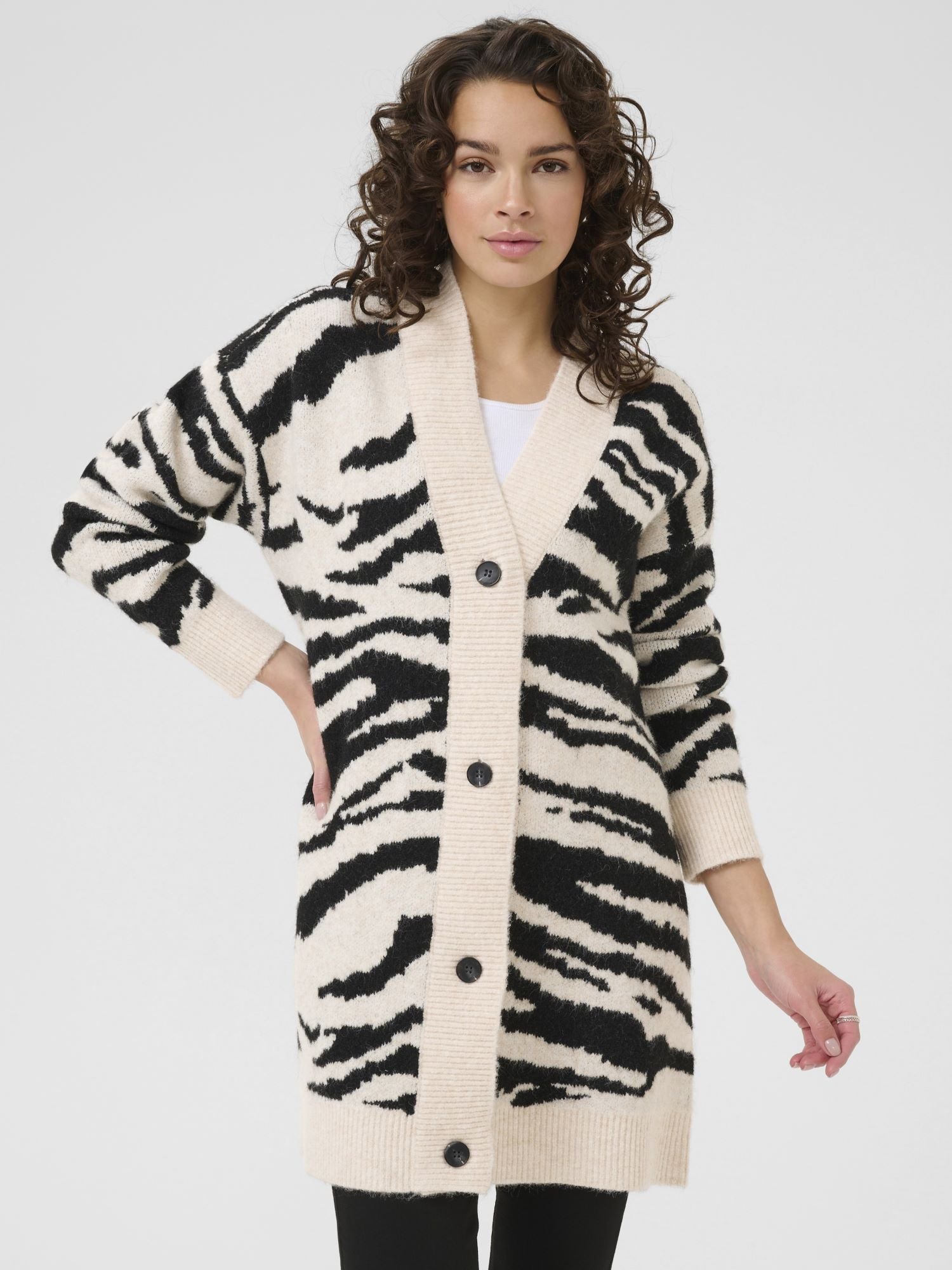 Kaffen Sandra neuletakki on rento malliltaan. Sopii loistavasti kerrospukeutumiseen. Neuletakki ulottuu reiteen asti antaen näin ihanasti lämpöä. Ihanan pehmeä ja lämmin neuletakki viileään ilmaan. Resorit hihansuissa ja helmassa. Nappilista.