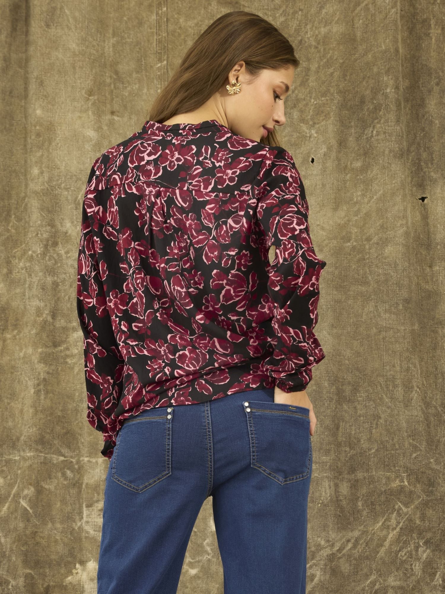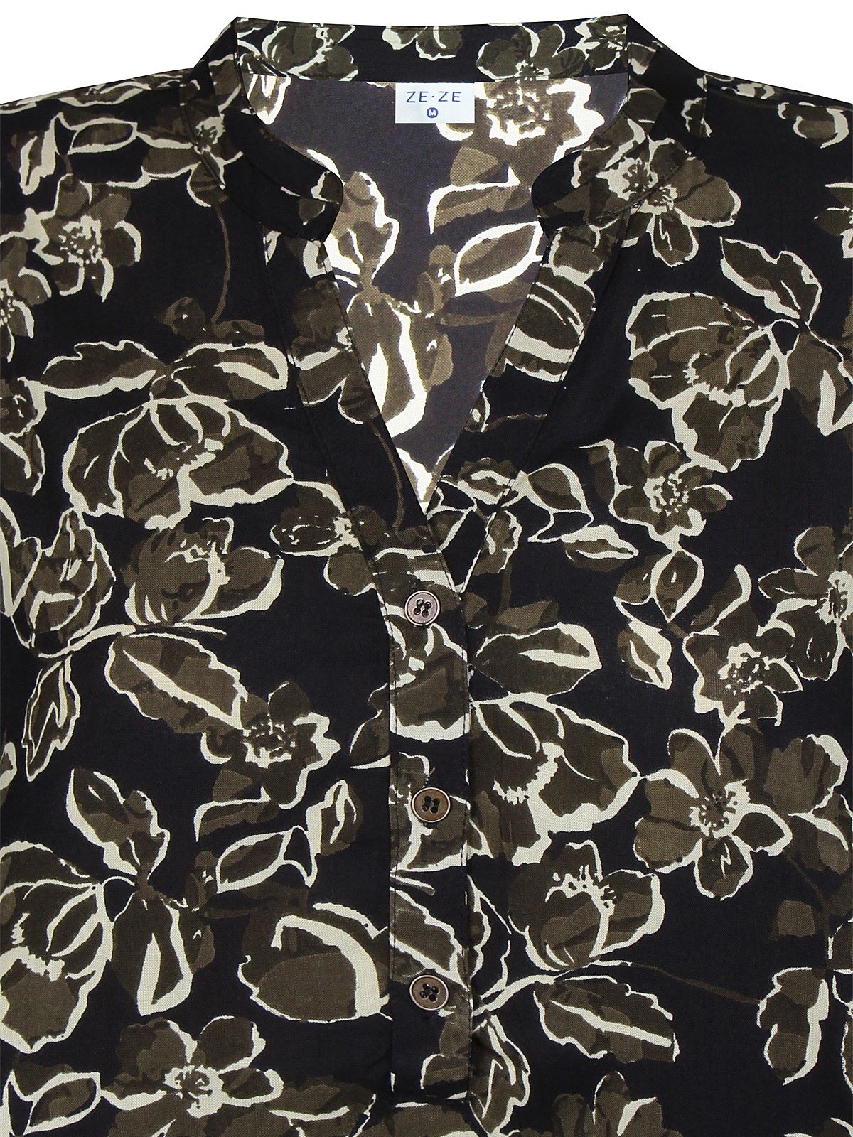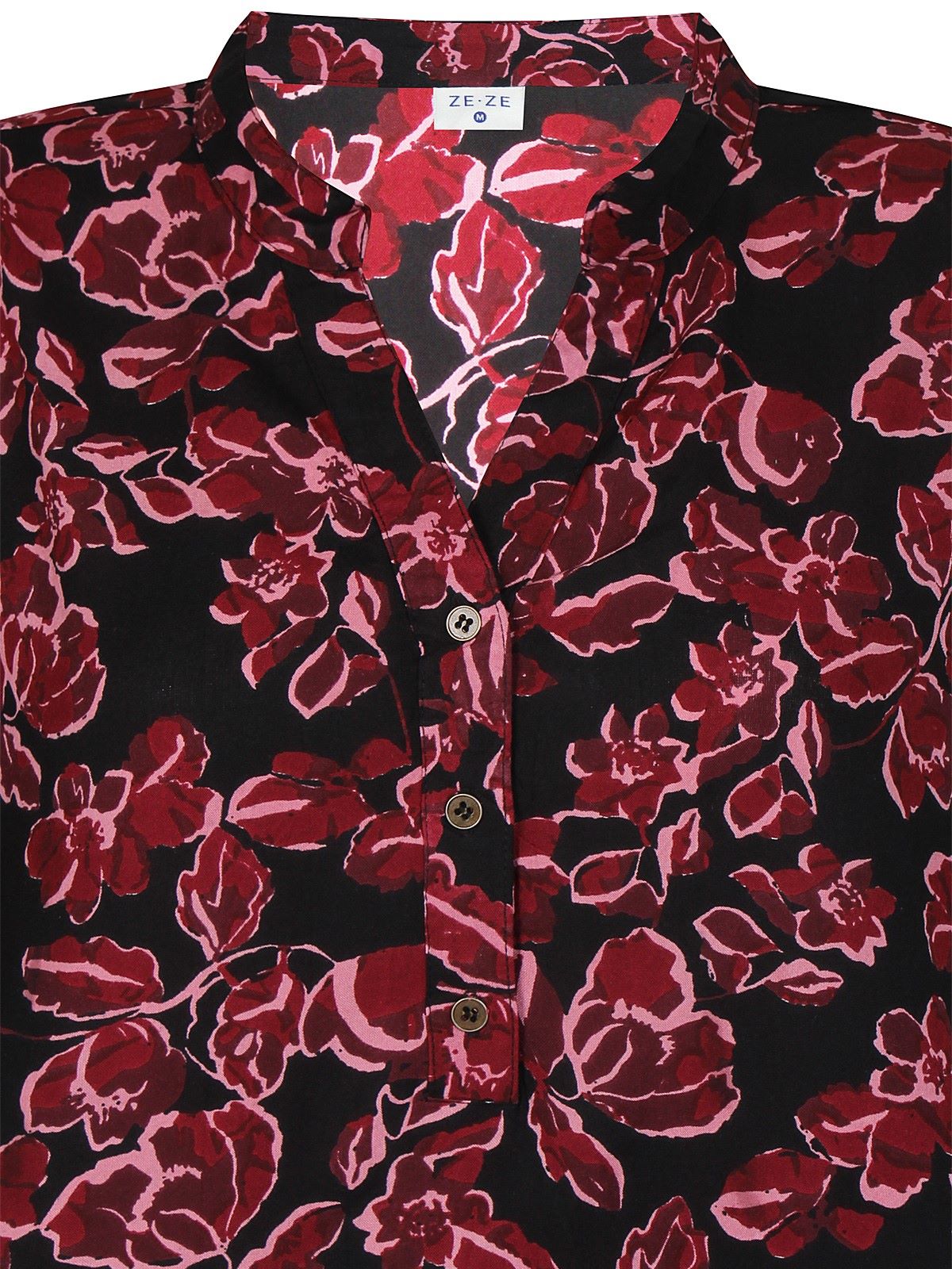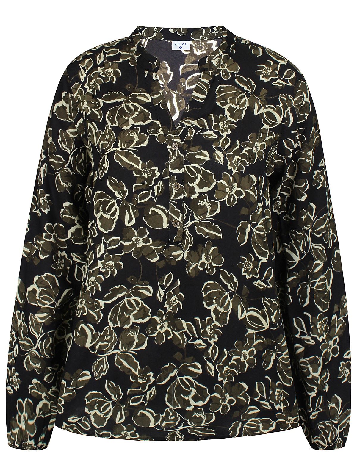 Ze-Zen ihana Relly peruspusero. Kaunis kukkakuosi kahdessa värissä. V-pääntie, napitus rinnan alle. Täyspitkä hiha jossa kuminauha hihansuussa. Suora helma.