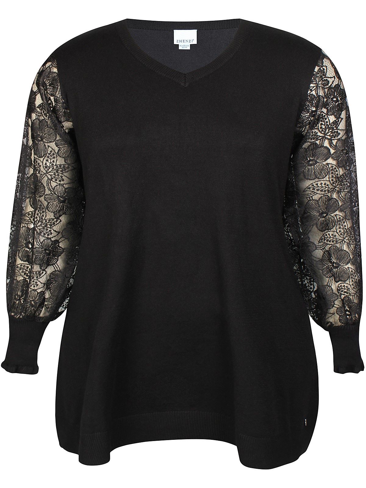 Zhenzin kaunis Kogle neuletunika jossa ihanat pitsiset hihat. Hihansuissa frilla. Korkeat resorit hihansuissa. V-pääntie. Resori helmassa.