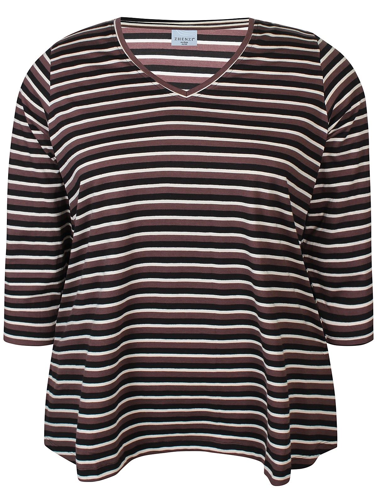 Zhenzin ihanan pehmeä Alberta t-paita. 3/4 hiha. V-pääntie. Hyvä istuvuus. Pirteän raidallinen t-paita kahdessa eri värissä.
