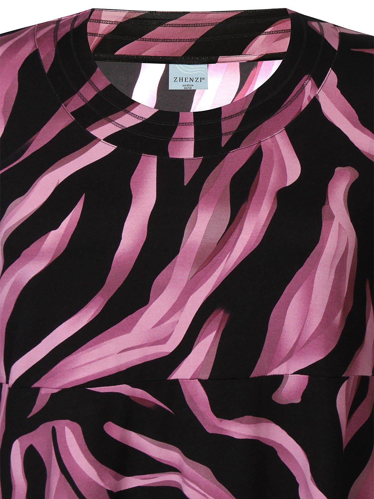 Zhenzin Saia on ihanan pehmeä ja joustava trikootunika. Pyöreä pääntie. 3/4 hihat. Sopivasti korostettu vyötärö. Lievästi levenevä helma. Yläosa on tyköistuva.