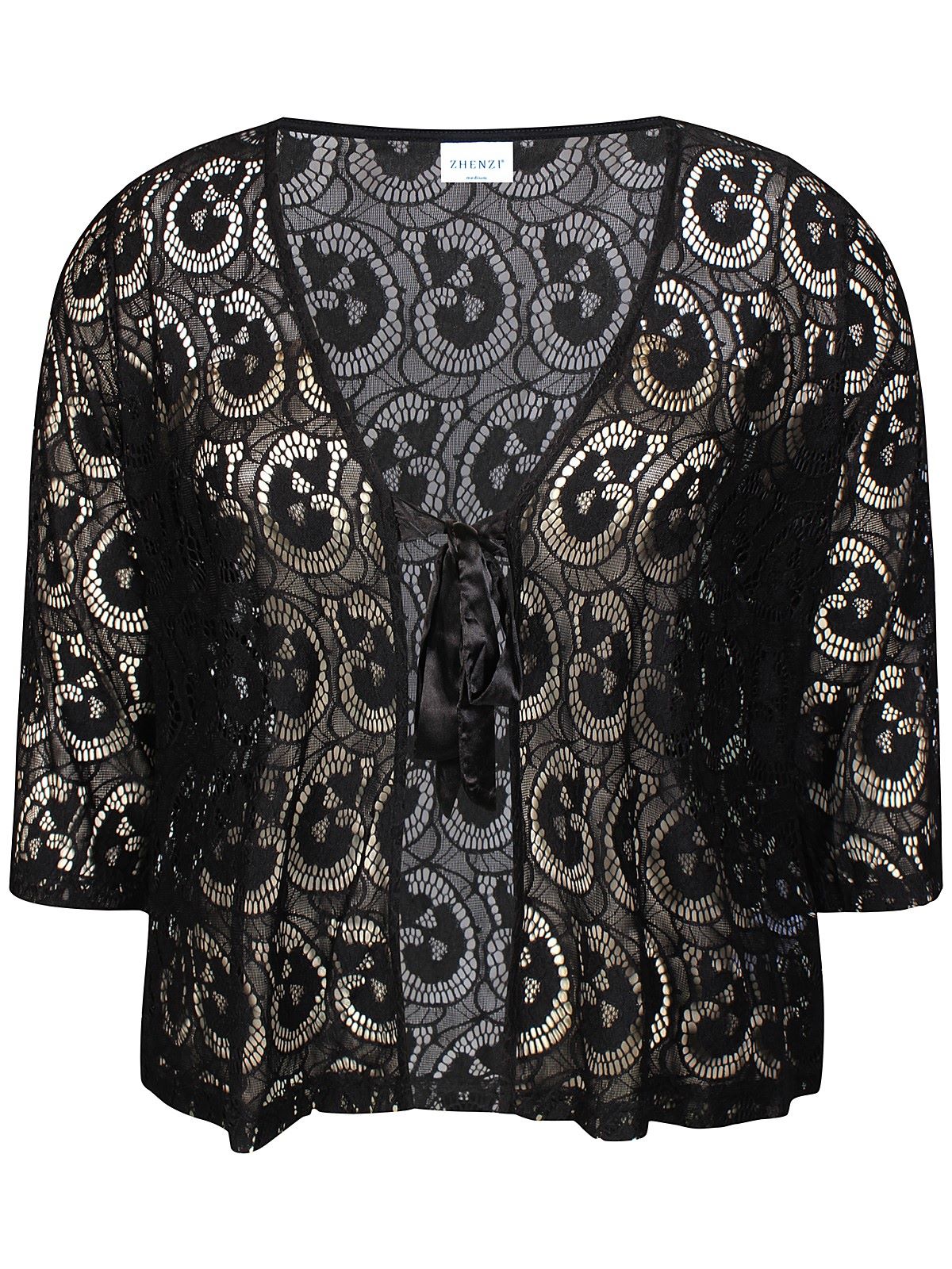 Zhenzin kaunis pitsinen Sevy bolero on kaunis lisä pukeutumiseen mekkojen ja tunikoiden kanssa. 3/4 hihan pituus. Edessä satiininauha kiinnitys. Joustava ja miellyttävän tuntuinen pitsi.