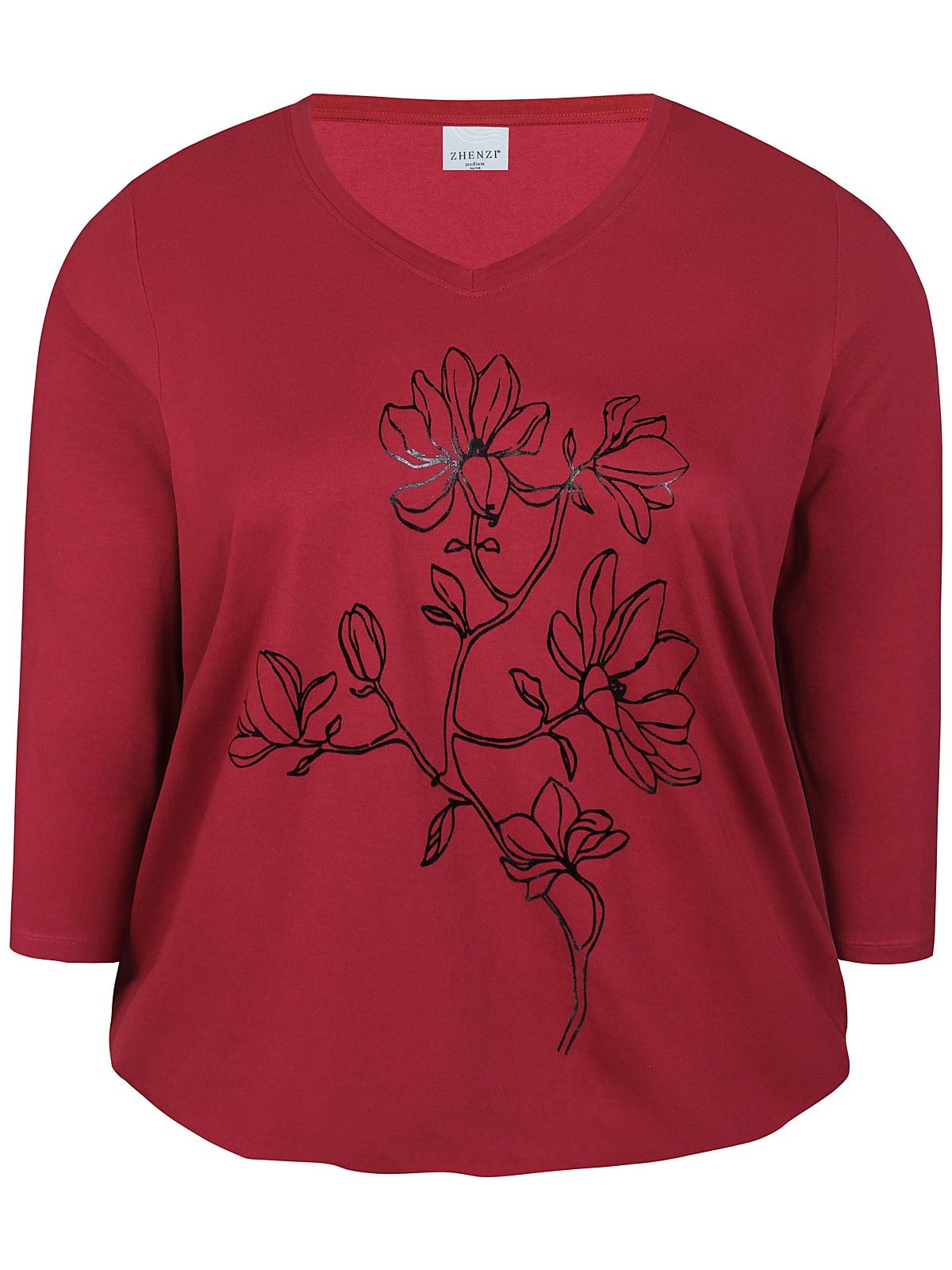 Zhenzin kaunis kukkakuviollinen T-paita. V-pääntie. 3/4 hihan pituus. Helmassa kuminauha.