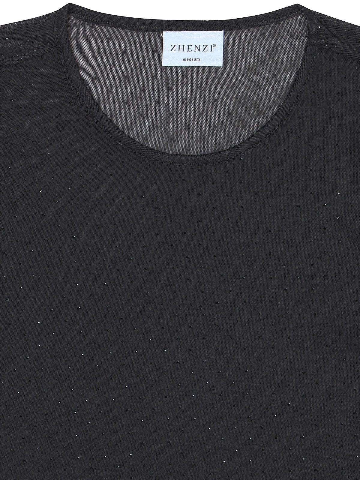 Zhenzin upea mesh pusero Tiri on turvallinen valinta mihin tahansa vaatekaappiin. Puseroa koristavat pienet mustat timantit. Pusero on läpinäkyvä. Voit käyttää toppia alla. Pluskoon mallisto. Puseron kangas joustaa ja se on tarkoitettu ihonmyötäiseksi. Klassinen leikkaus ja ajaton musta väri tekevät tästä puserosta tyylikkään perusvaatteen, joka toimii aina. Pehmeä materiaali antaa runsaasti liikkumisvapautta ja mukavuutta, päivästä riippumatta.