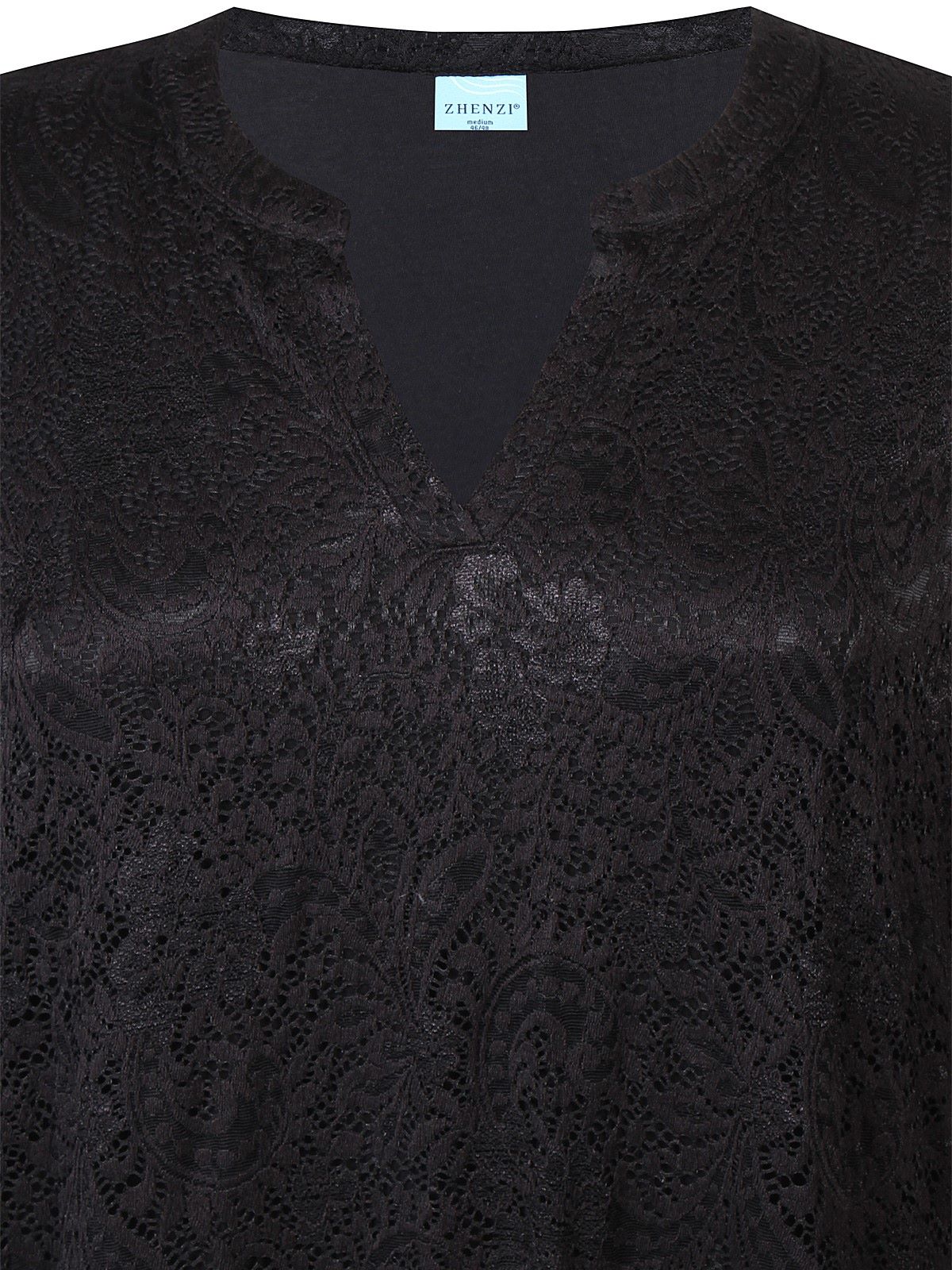 Zhenzin kauniin naisellinen pitsimekko. V-pääntie. Aavistuksen A-linjainen. 3/4 hihan mitta. Frilla hihansuussa ja helmassa. Joustava kangas. Vuorillinen. Hihat läpinäkyvät.