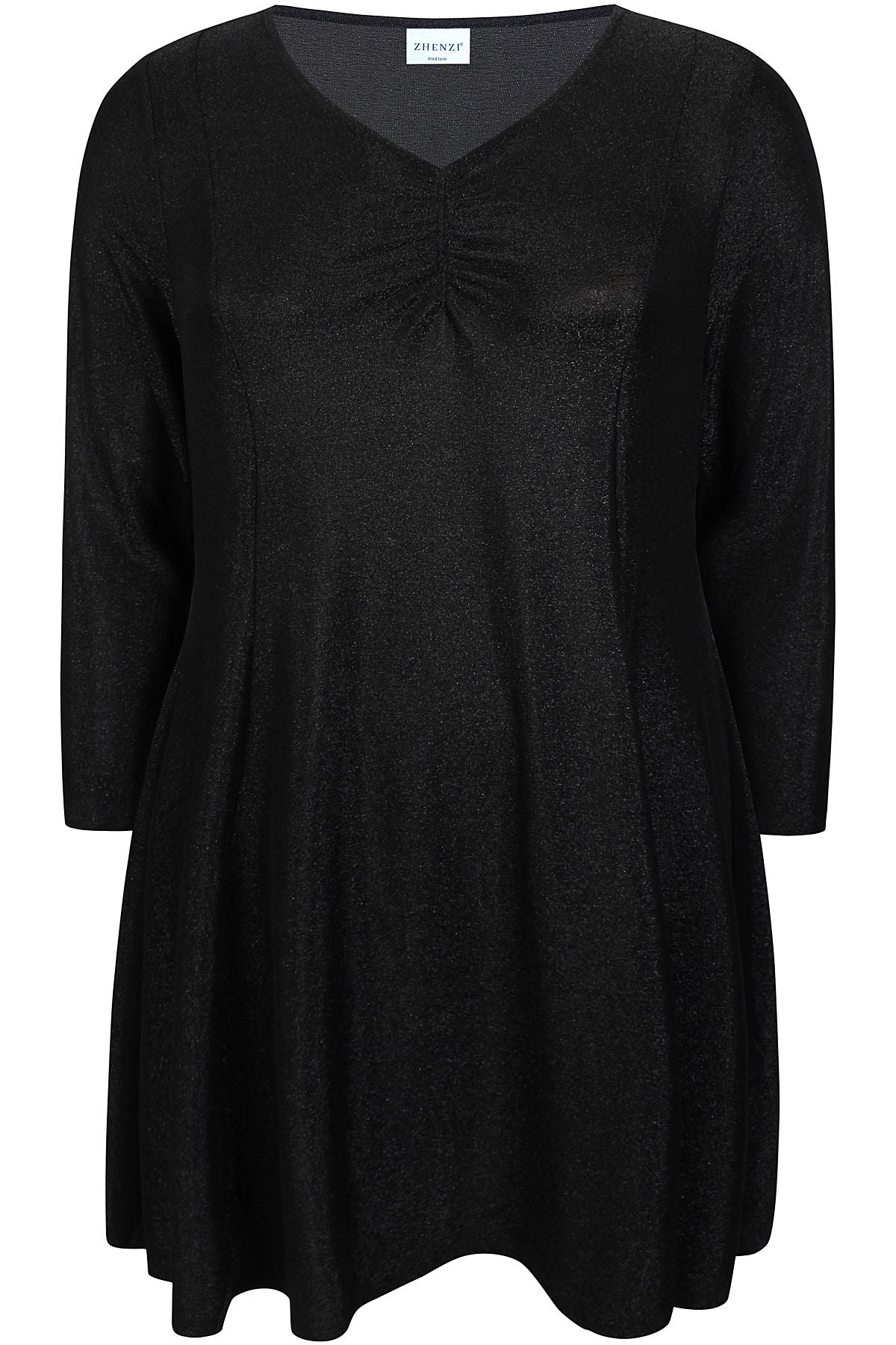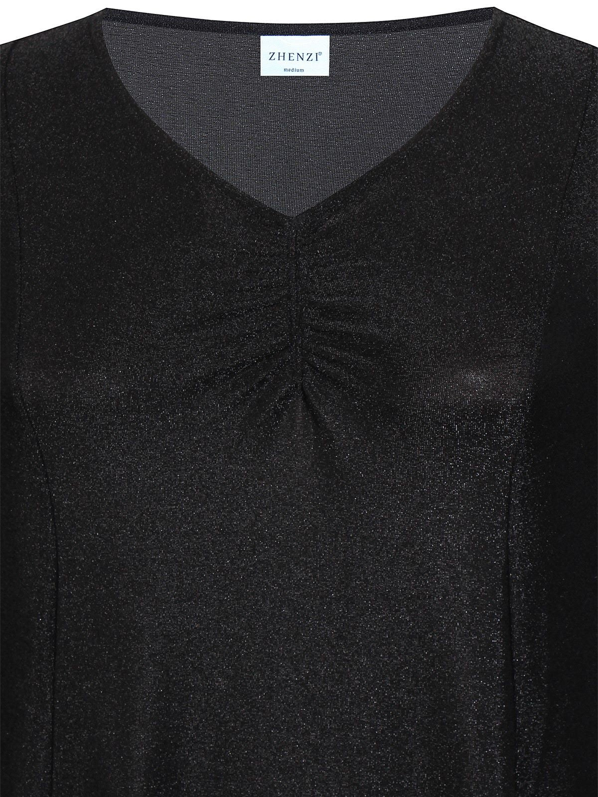 Zhenzin Toby mekko on kauniisti kimalteleva trikoomekko. V-pääntie. Rypytys edessä. Pitkät hihat. Mekko levenee helmaa kohden mentäessä. Plus-koon mallisto.